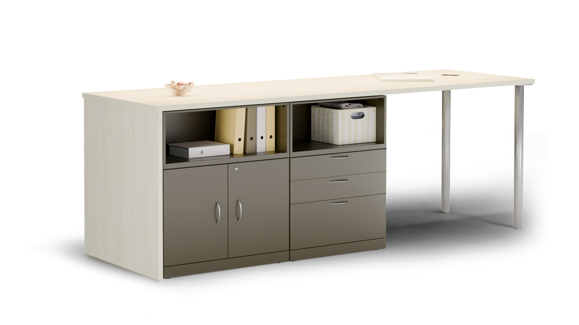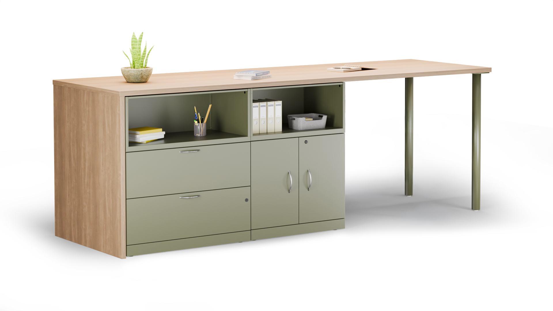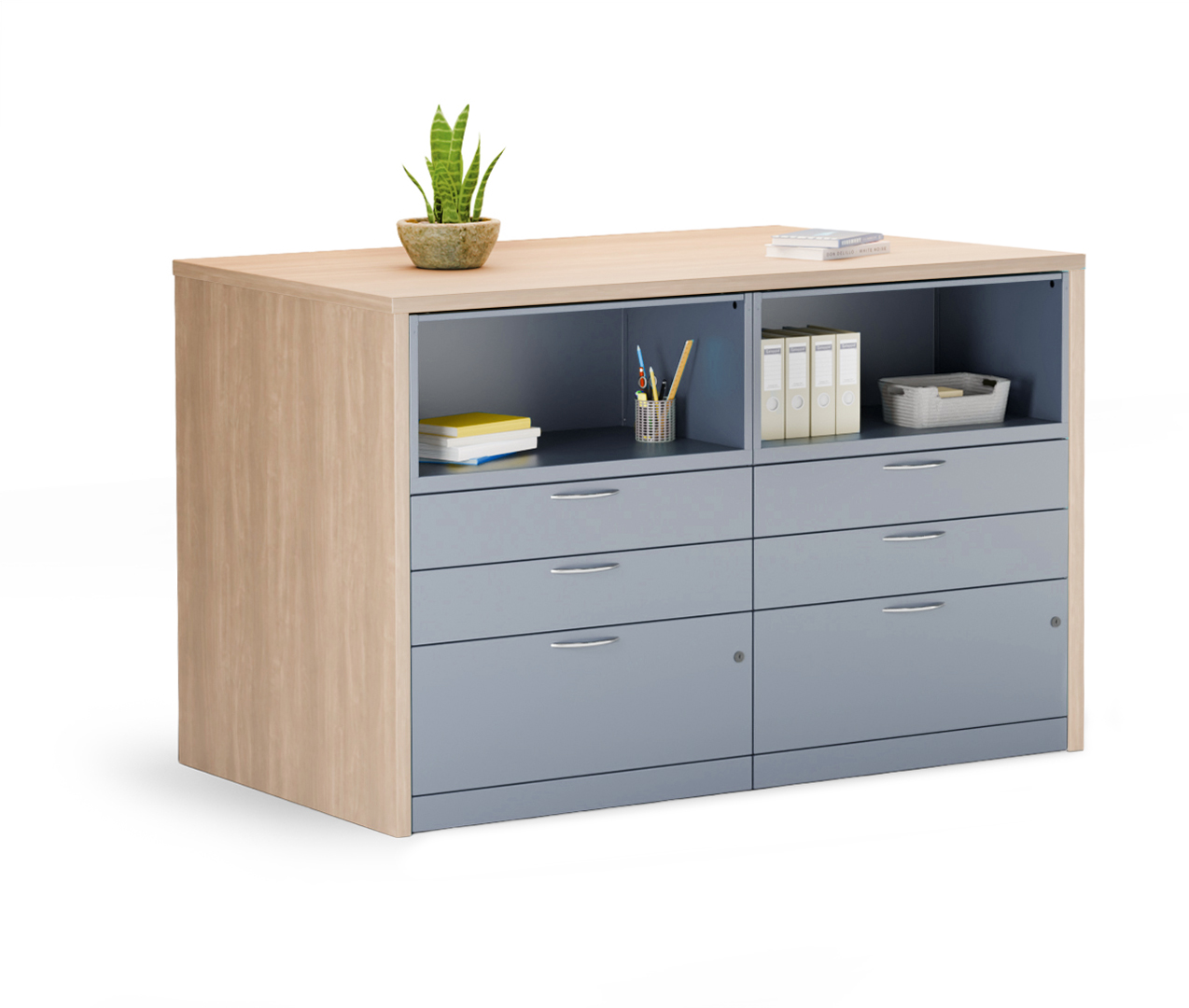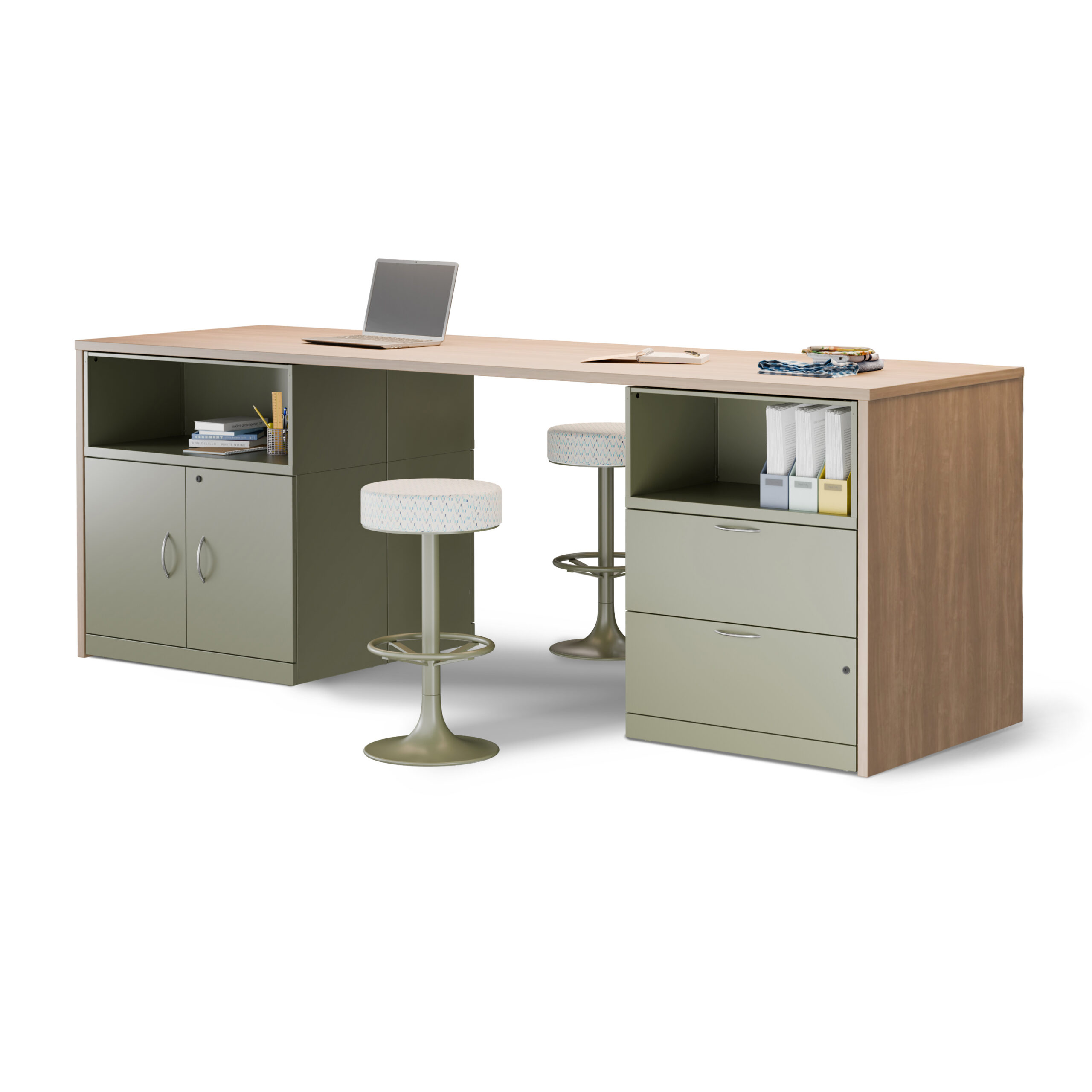 Great Openings Collaboration Islands create natural hubs for team interaction in open offices and collaborative spaces. They combine convenient on-site storage with open cubbies and generous laminate worksurfaces, perfect for quick access to files, supplies, or shared materials while encouraging impromptu meetings and group work. Configurations suit everything from compact team zones to larger central islands, with extended overhangs to support standing collaboration—all finished to match your office aesthetic.